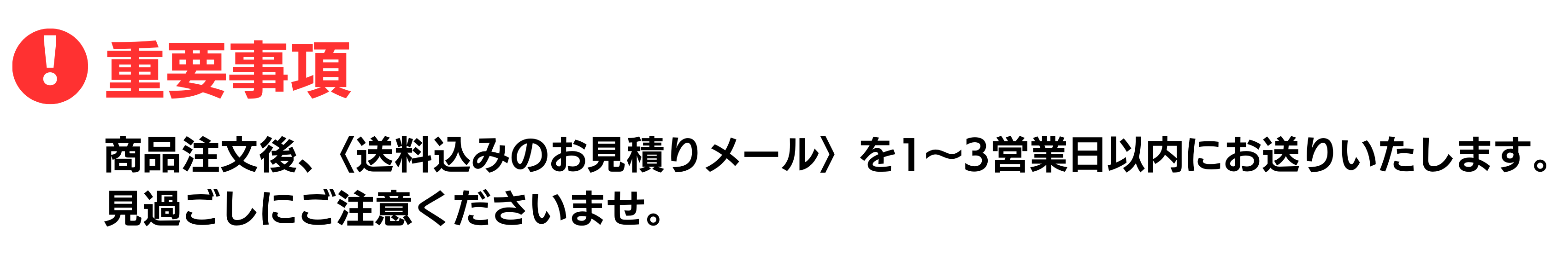 - ご注文後、1~3営業日程度で順次【送料込みのお見積りメール】をお送りさせていただきます。