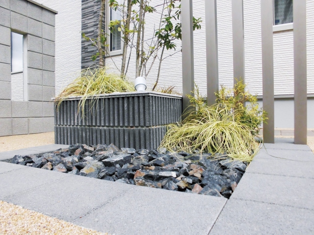 黒い石材になりますので、シックでオシャレなお庭を演出します。